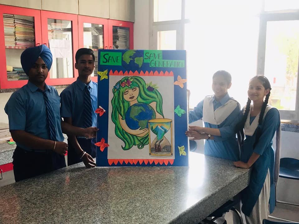 On 22 April the World Earth day is celebrated. So in order to sensitize the students about the earth being a living organism which is in its ailing condition, Inter House Activity of the month was dedicated to environmental issues. Students took pledge in the morning assembly to save Mother Earth. Posters, charts and models were prepared and displayed to build the awareness in this regard. A power point presentation was held emphasizing the need to conserve the resources for the future. The students also carried posters made on this theme and walked around the school campus. Huge banners were hung at prominent places in the school. The Principal Mr. Shaminder Verma enthusiastically visited the venues for different activities and appreciated the initiative taken by the students and their mentors. He also advised the students to alter their habits for the sake of healthy and prosperous Earth. The honourable Management members expressed their regard for the gifts of Nature to Human life and encouraged the mission of students.